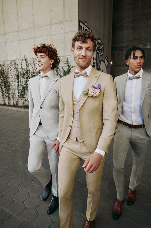 Die Kollektion bietet Bräutigamen und Hochzeitsgästen eine Mode, die modern aussieht, sich mühelos trägt und gleichzeitig ein echtes Statement setzt.