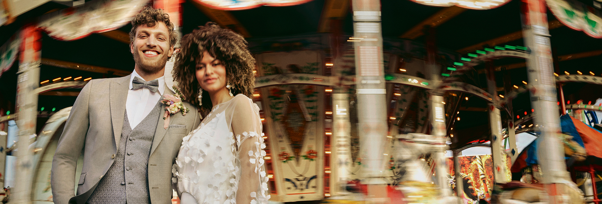 Die Anzüge wirken relaxt, stilvoll und organisch – perfekt für Paare, die Authentizität schätzen und dennoch einen eindrucksvollen Hochzeitslook wollen.